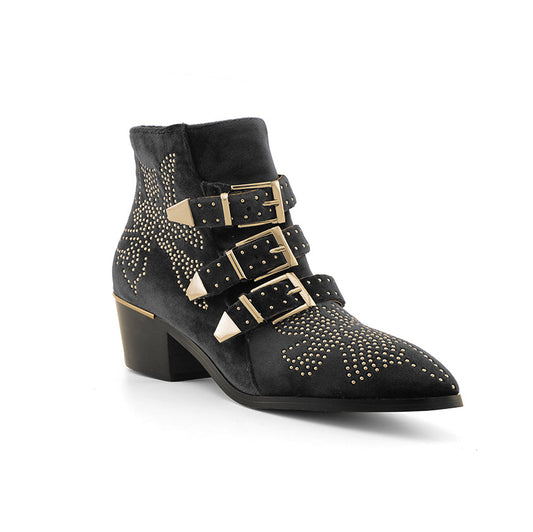 CARMEN Chloe Gold Studded Velvet Ankle Boots