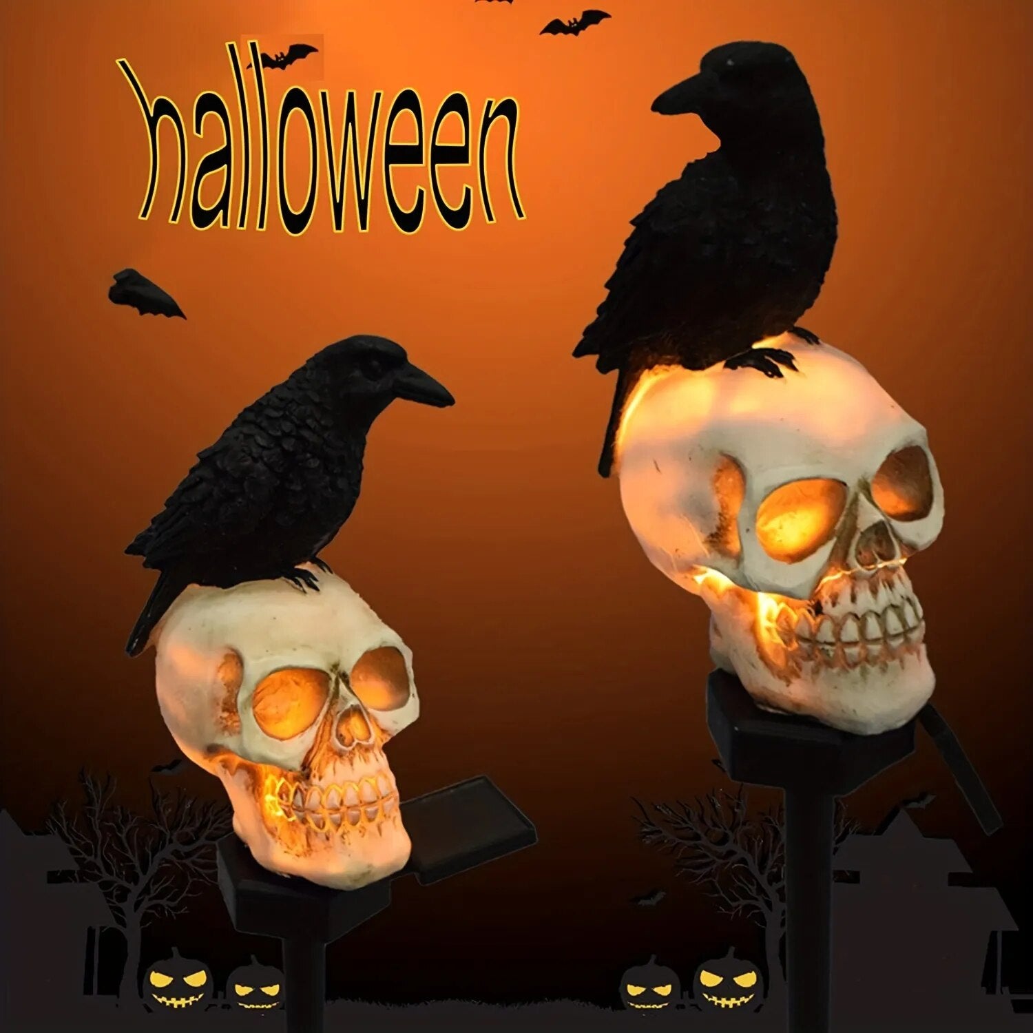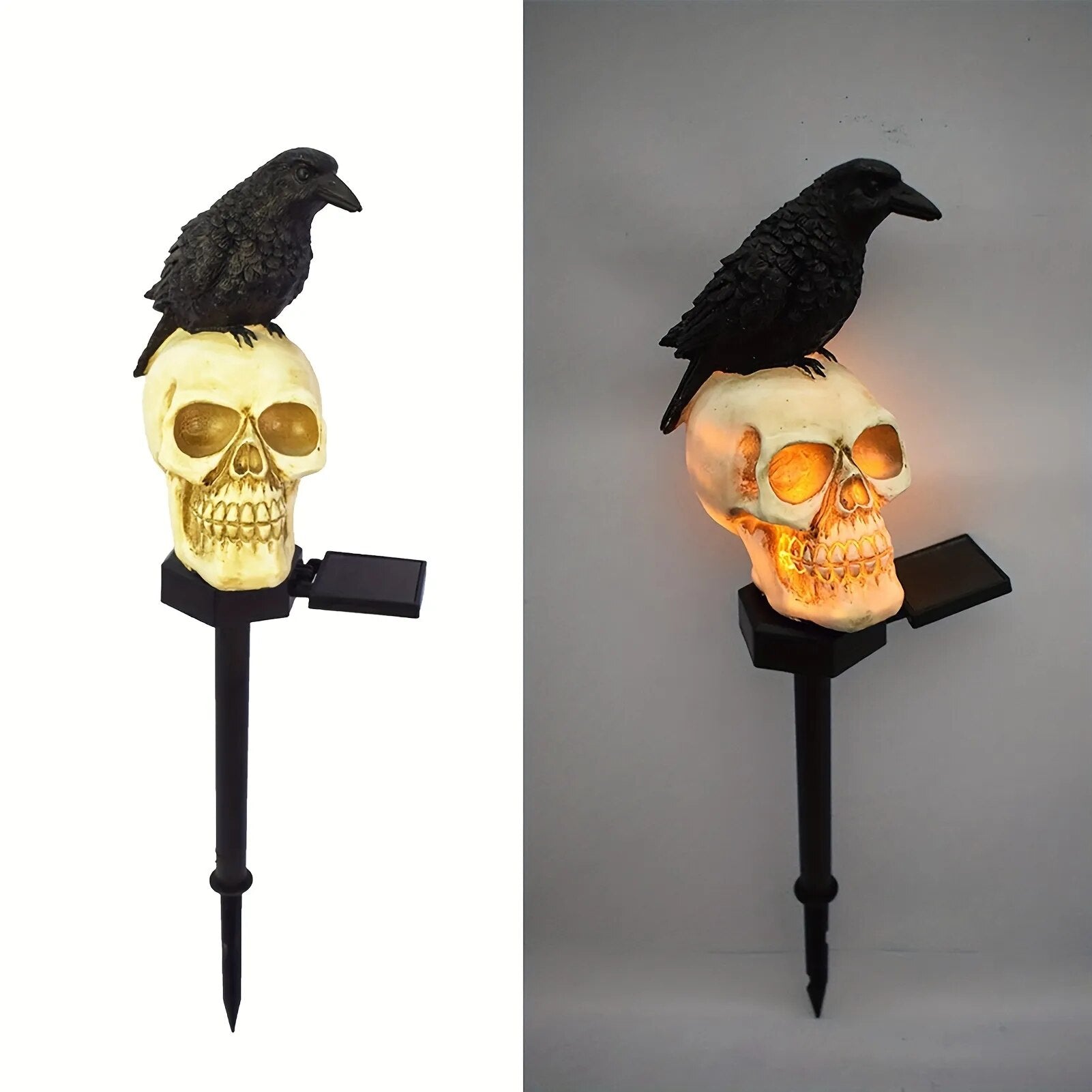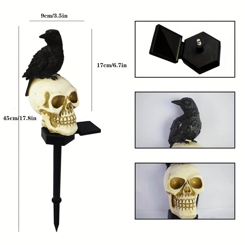Solar Resin Halloween Crow Skull Light Outdoor