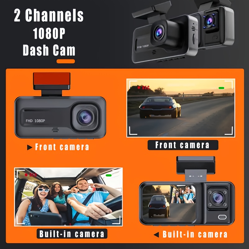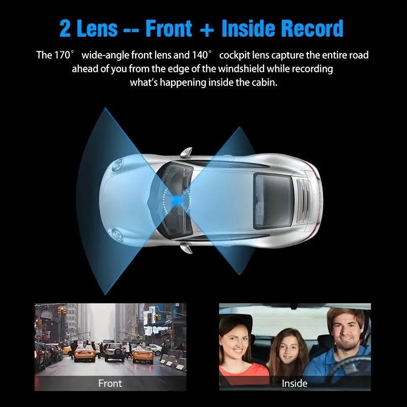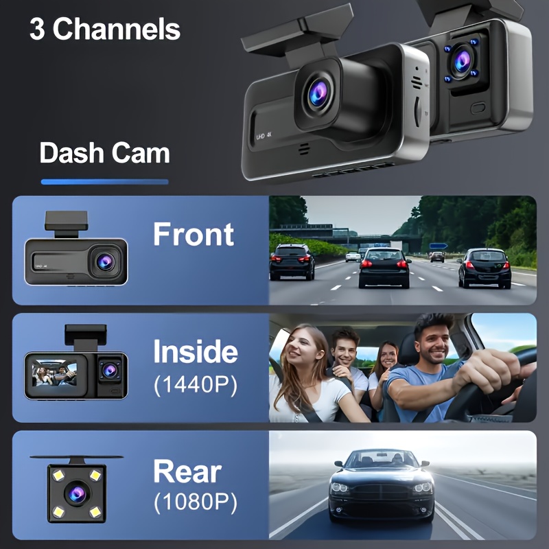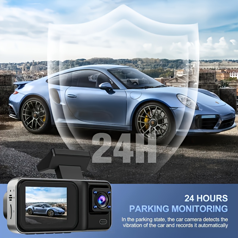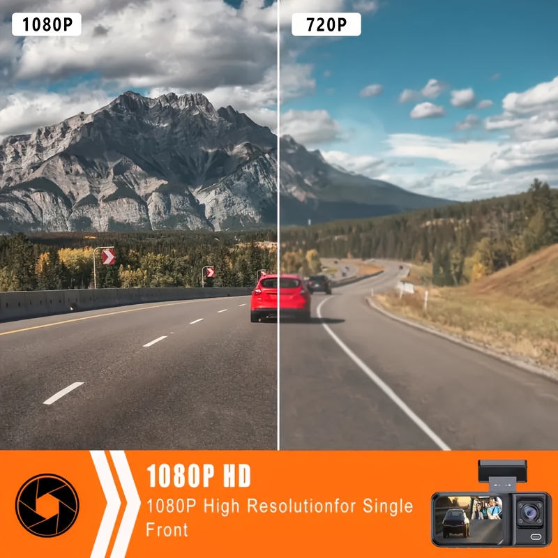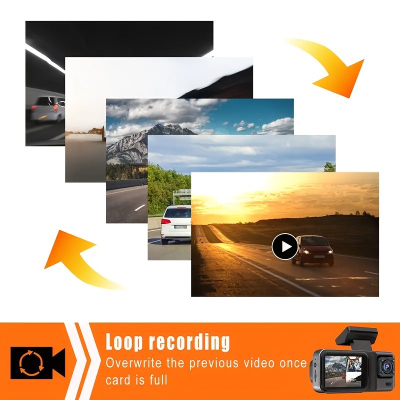 Tripla Fotocamera HD Visione Notturna - Scatola Nera DVR Auto a 3 Canali con Obiettivi Integrati Anteriore/Posteriore, Registrazione 1.3MP, Video in Loop 24h e Funzione Infrarossi