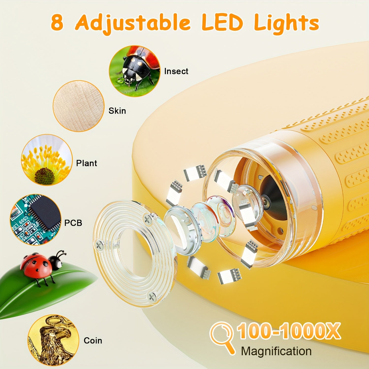 Ingrandimento 100X–1000X: Il microscopio digitale 2.0 per bambini 2025 aggiornato supporta ingrandimenti da 100X a 1000X, consentendo un'osservazione chiara delle texture delle ali degli insetti, delle venature delle cellule vegetali, dei complessi motivi delle monete e altro ancora. Rivela facilmente dettagli microscopici invisibili a occhio nudo, suscitando una curiosità infinita per la scienza.
