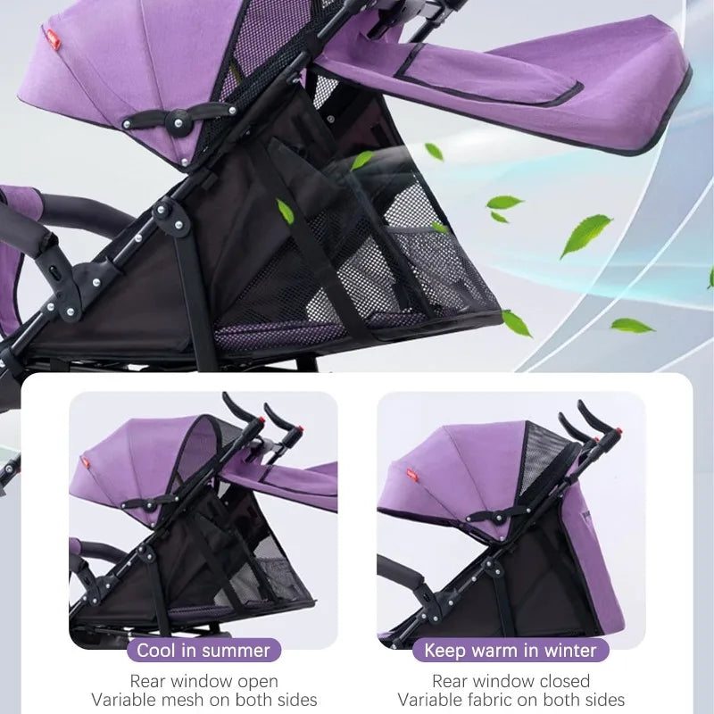 【Optimal Ventilation and Comfort】On hot summer days, our stroller features a ventilation design that prioritizes the comfort of your baby. The rear and side curtains can be rolled up to promote airflow and breathability, preventing your baby from feeling uncomfortable or stuffy. Rest assured that your baby will stay cool and content while enjoying a pleasant stroll.