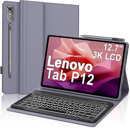 - 【Custodia con tastiera magnetica per Lenovo Tab P12】La tastiera per Lenovo Tab P12 è dotata di una forte connessione magnetica che la rende facile da attaccare e staccare dalla custodia. Il Bluetooth 5.0 offre una connessione più veloce e una migliore risposta.