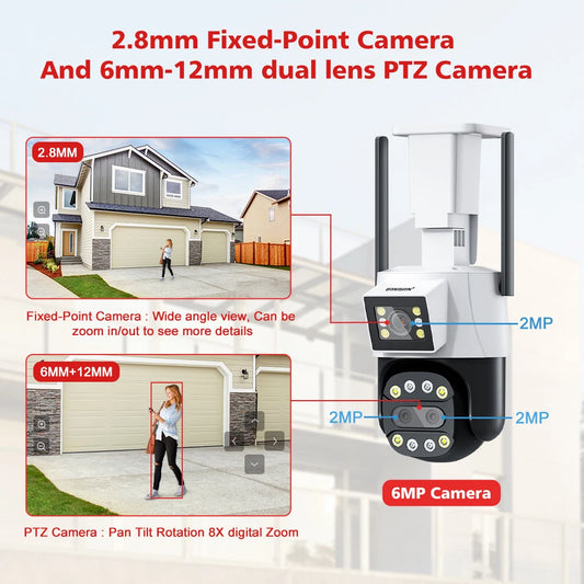 6MP Wi-Fi/4G Camera Dual Screen Three-Lens Outdoor AI Auto Tracking 8X Digital Zoom PTZ and Fixed Point Link Camera