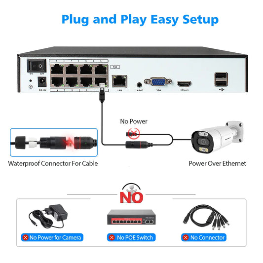 4K 8MP 8CH POE Video Surveillance Camera System Kit External AI Face Detection Audio Recording Color Night Vision H.265 XMEye Pro