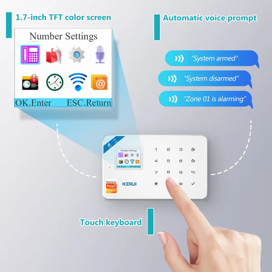 KERUI W184 Sistema di allarme di sicurezza domestica intelligente WiFi 4G GSM Wireless Tuya App di controllo Schermo a colori da 1,7 pollici Host di comandi vocali