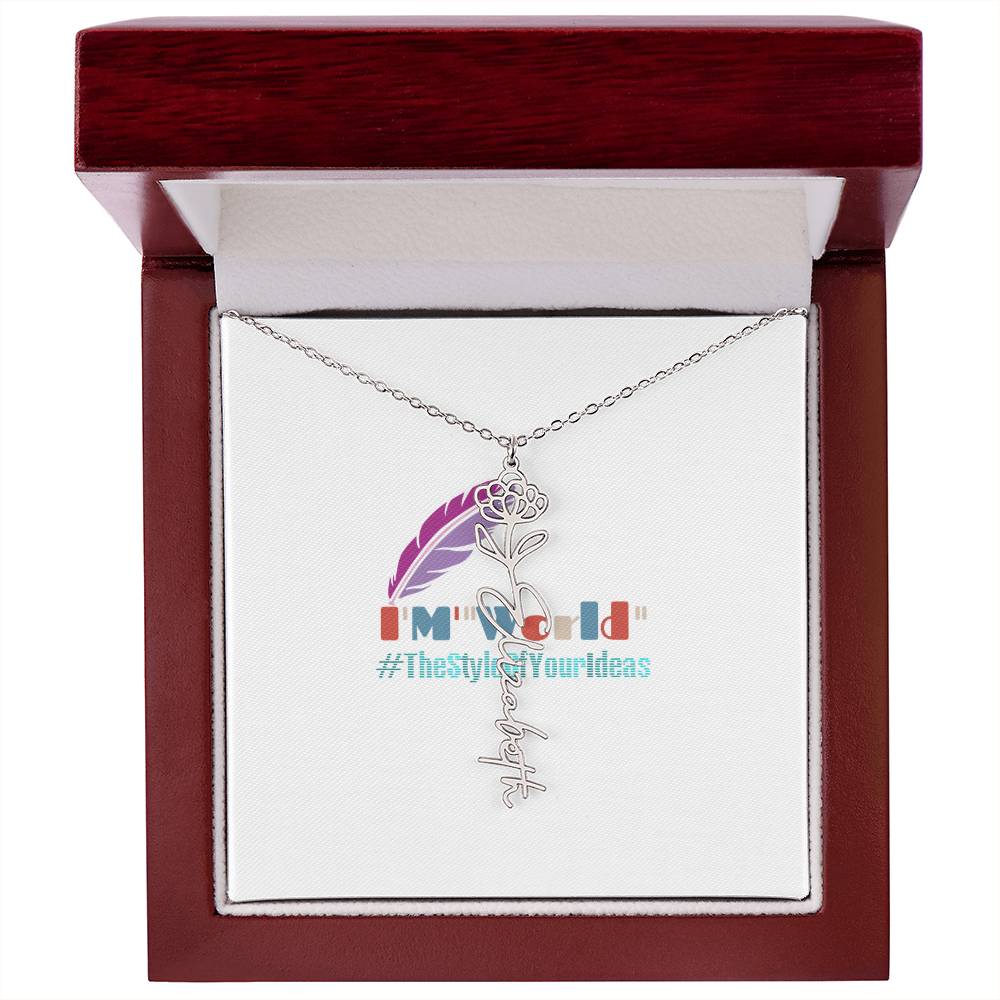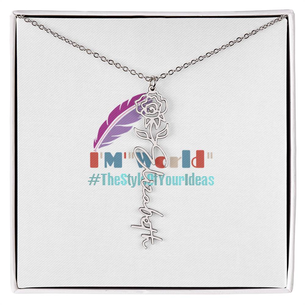 This stylish necklace features a cursive name design suspended on an 16”-18” adjustable cable chain, making it both personal and beautiful! Your necklace will be custom made upon ordering in the name or word of your choice, with up to 10 characters, and with the birth flower of your choosing. It's a gift that they will surely want to keep close to their heart forever!