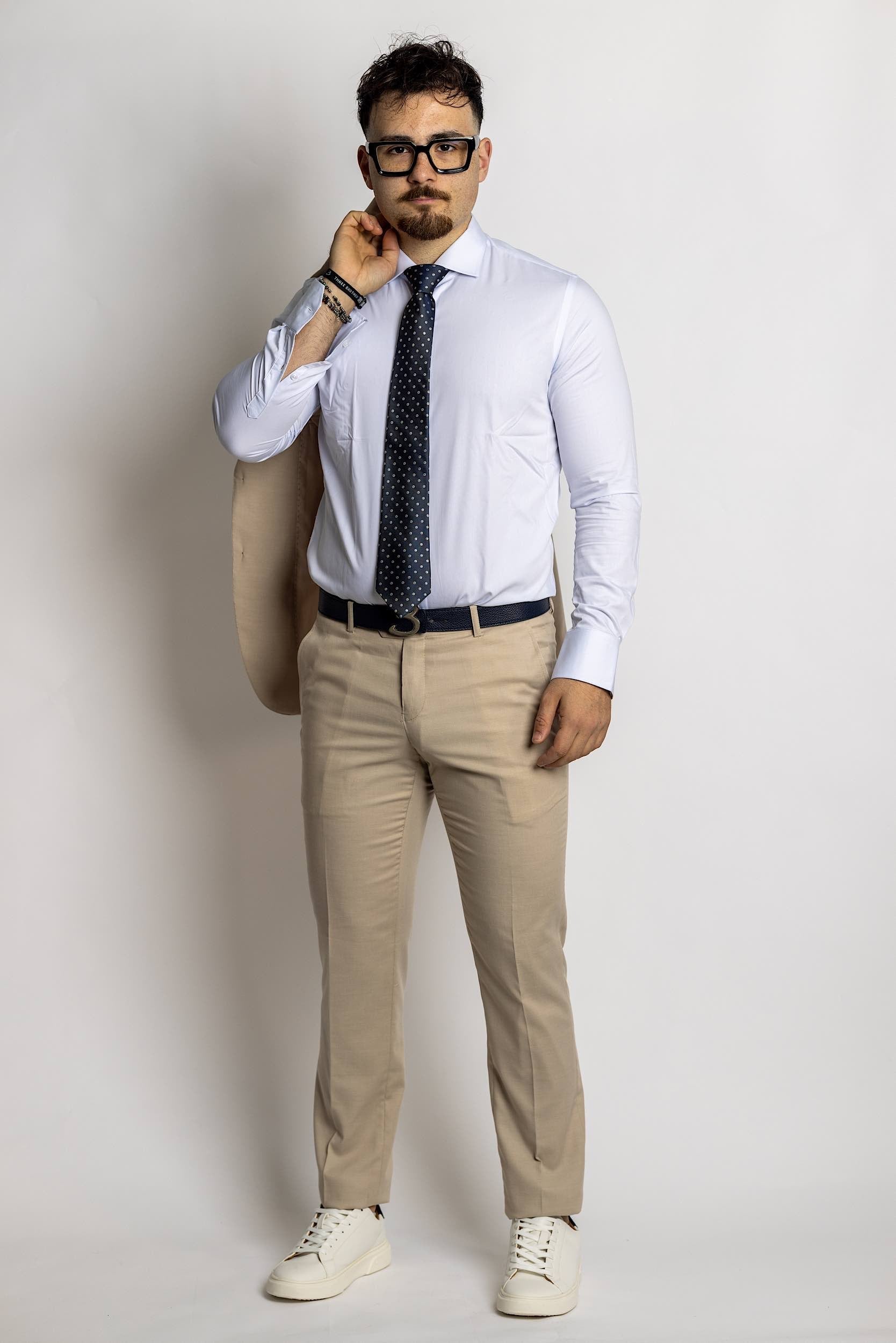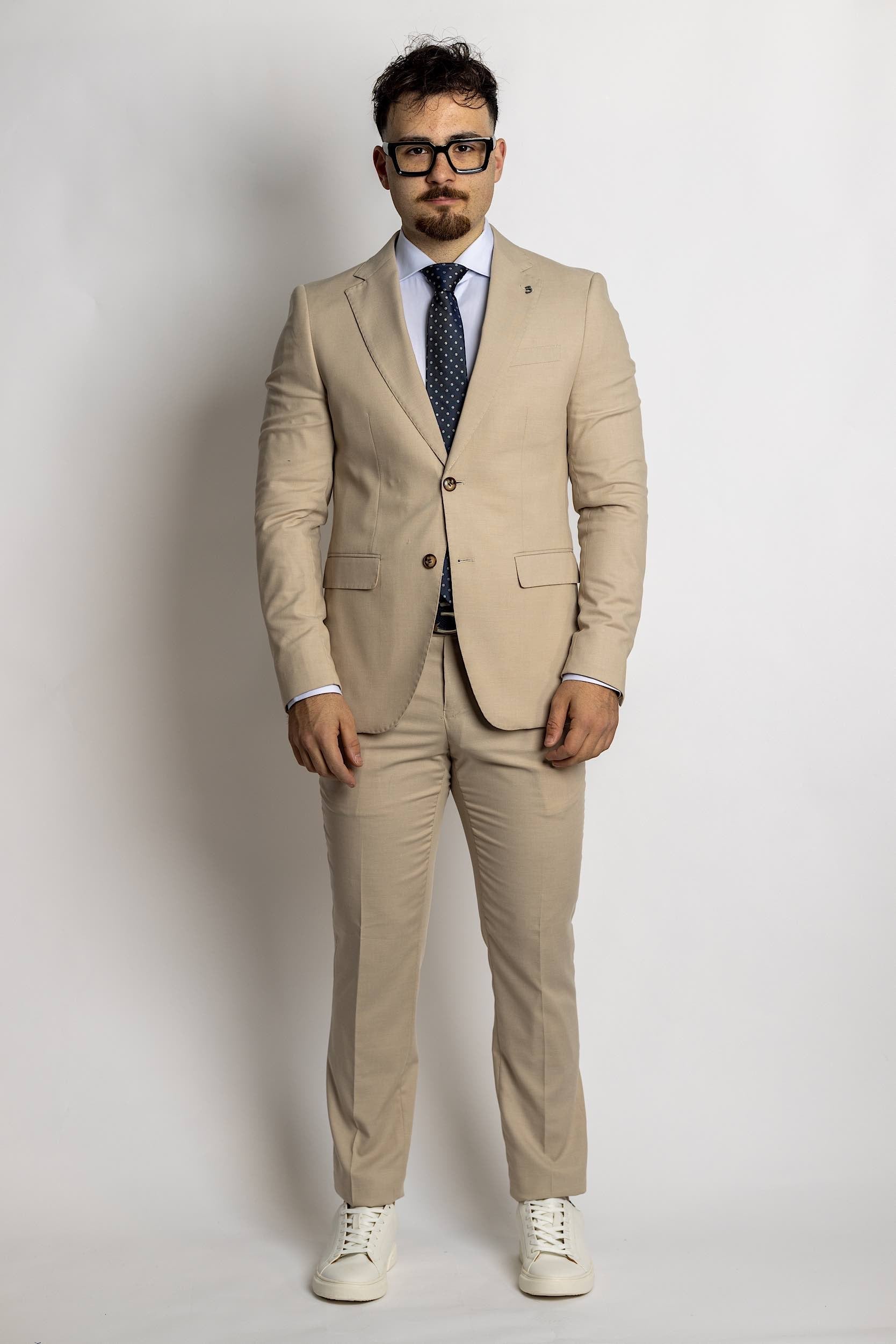 Abito Due Bottoni con Tessuto Lavorato | Beige