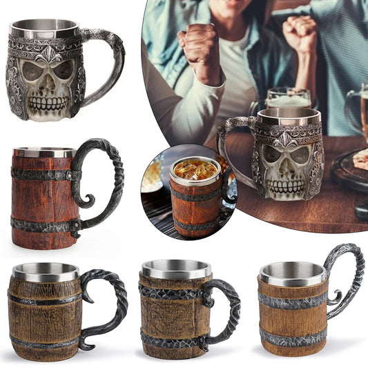 Boccale da birra in stile legno vichingo Tazza da caffè in acciaio inossidabile in resina