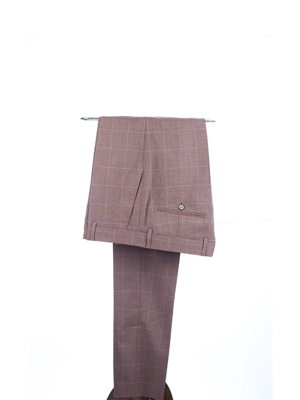 Abito marrone ruggine a quadri giacca a 2 bottoni, gilet a 4 bottoni e pantaloni.