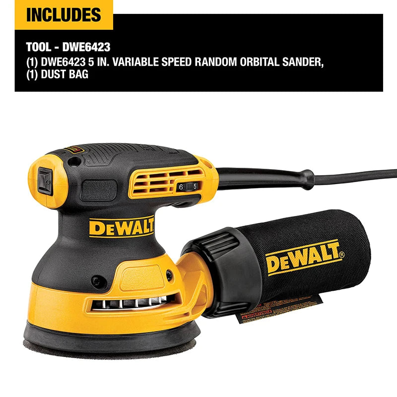 Dewalt DWE6423 Levigatrice orbitale casuale classica da 280 W a velocità variabile da 5 pollici con raccolta polvere per la lavorazione del legno 220 V