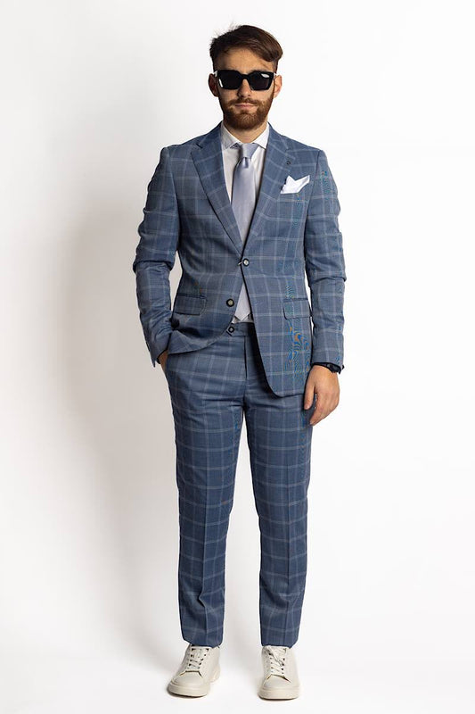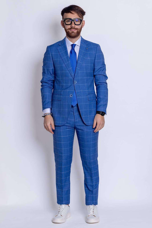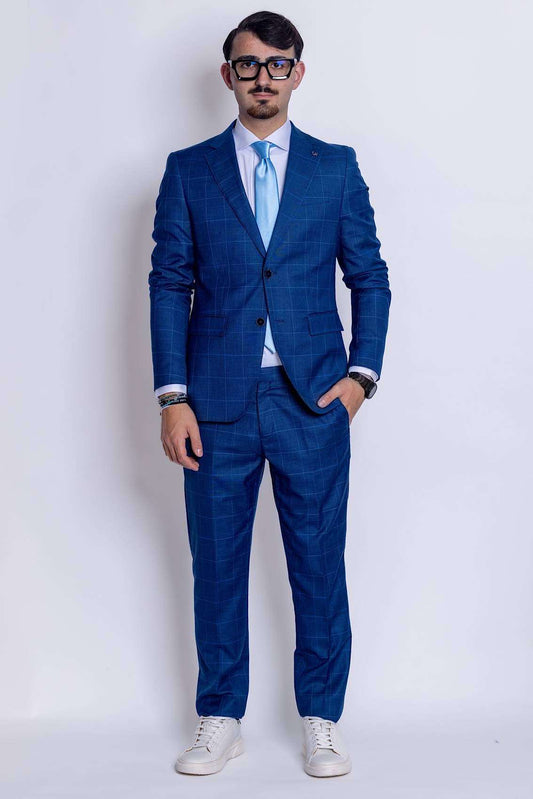 Abito Due Bottoni Principe di Galles | Blu Elettrico