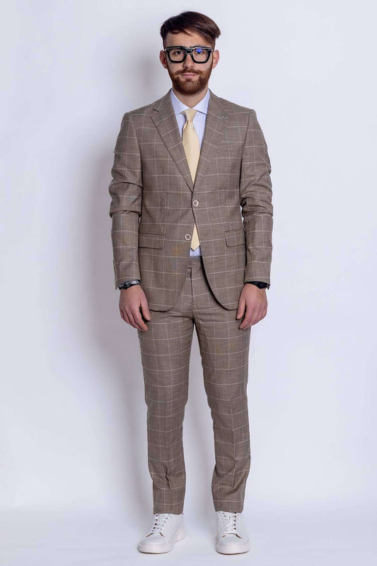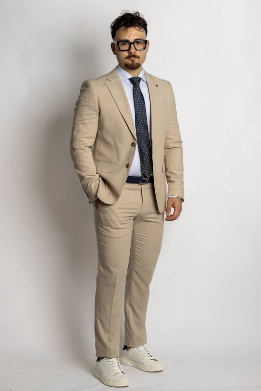 Abito Uomo Monopetto Completo Lino Sartoriale Giacca Pantaloni Tinta Unita Camel