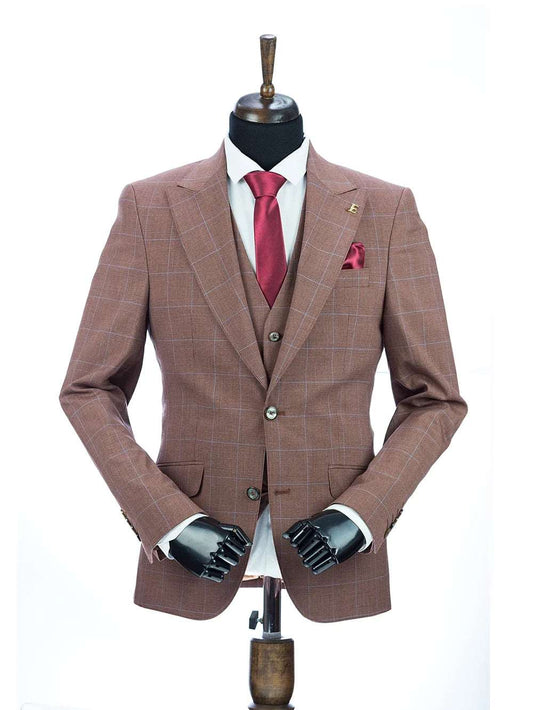 Abito Uomo Monopetto Completo Lino Sartoriale Giacca Pantaloni Tinta Unita Mattone