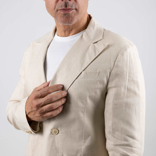 Abito Uomo Monopetto Completo Lino Sartoriale Giacca Pantaloni Tinta Unita Panna