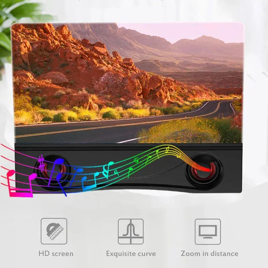 Phone Screen Magnifier Bluetooth Stereo Speaker HD 12 inch 3D