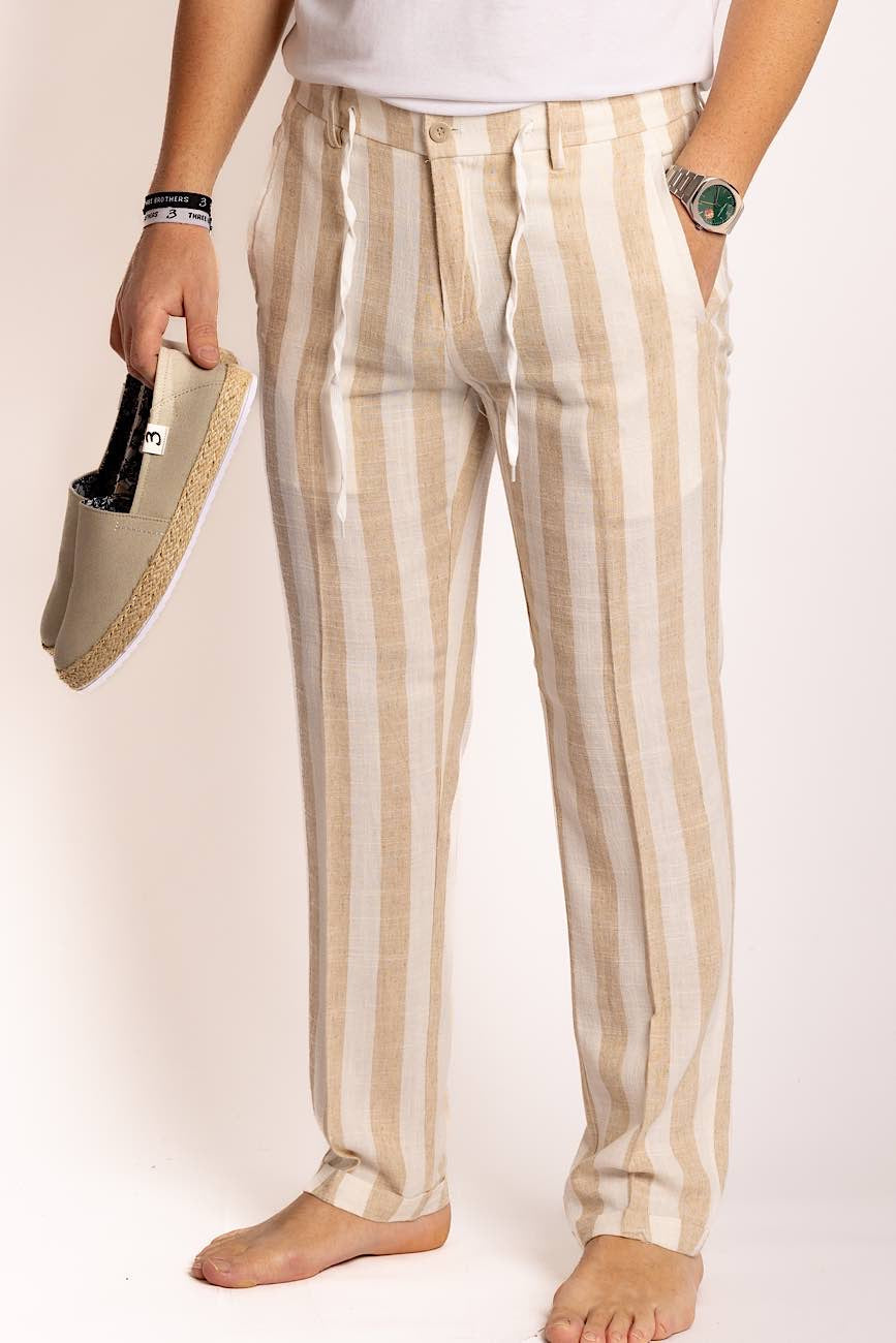 Pantalaccio in Lino Gamba Morbida Gessato 2 per €70 | Beige