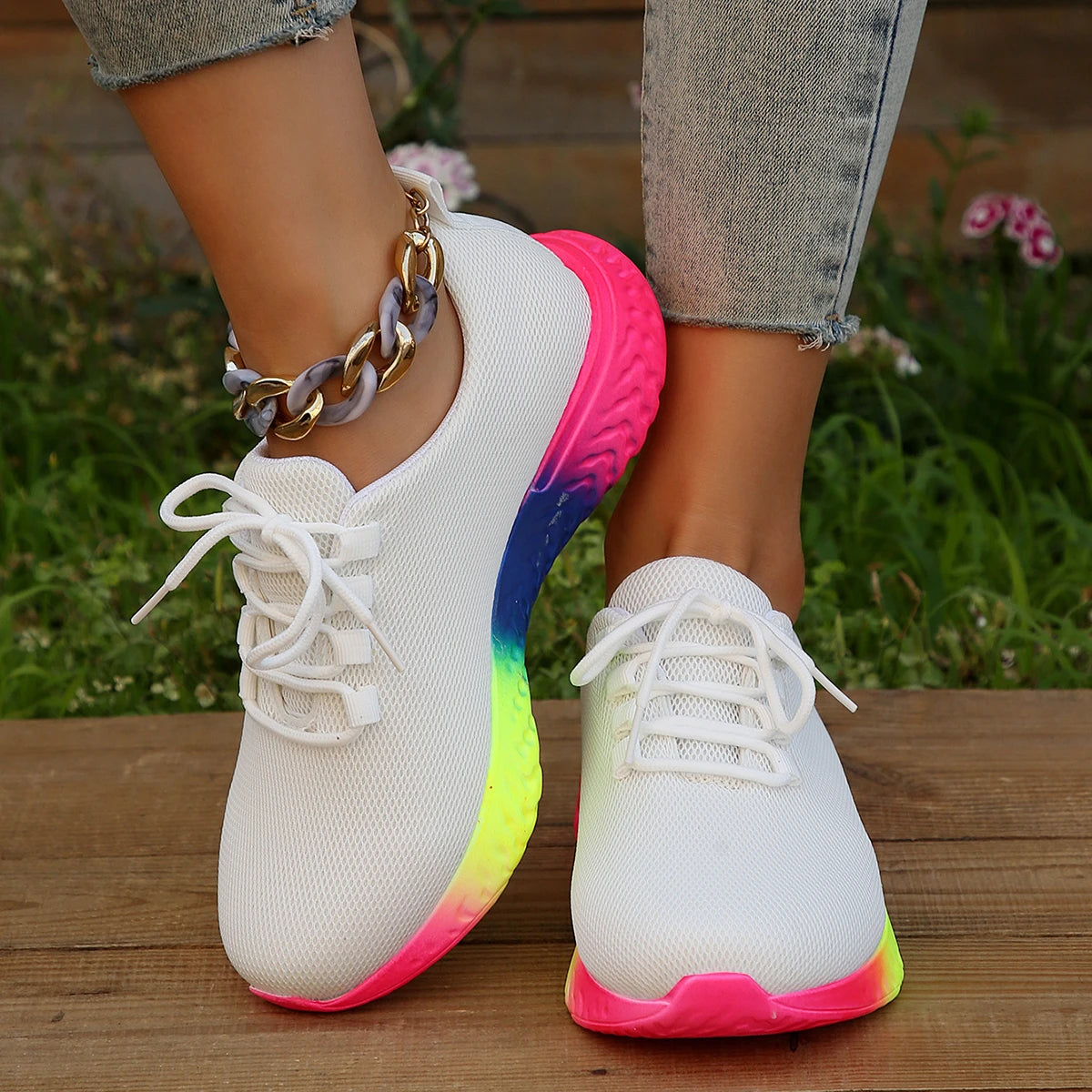 Sneakers in rete traspirante da donna, scarpe casual basse con lacci e punta tonda, scarpe da corsa sportive da donna